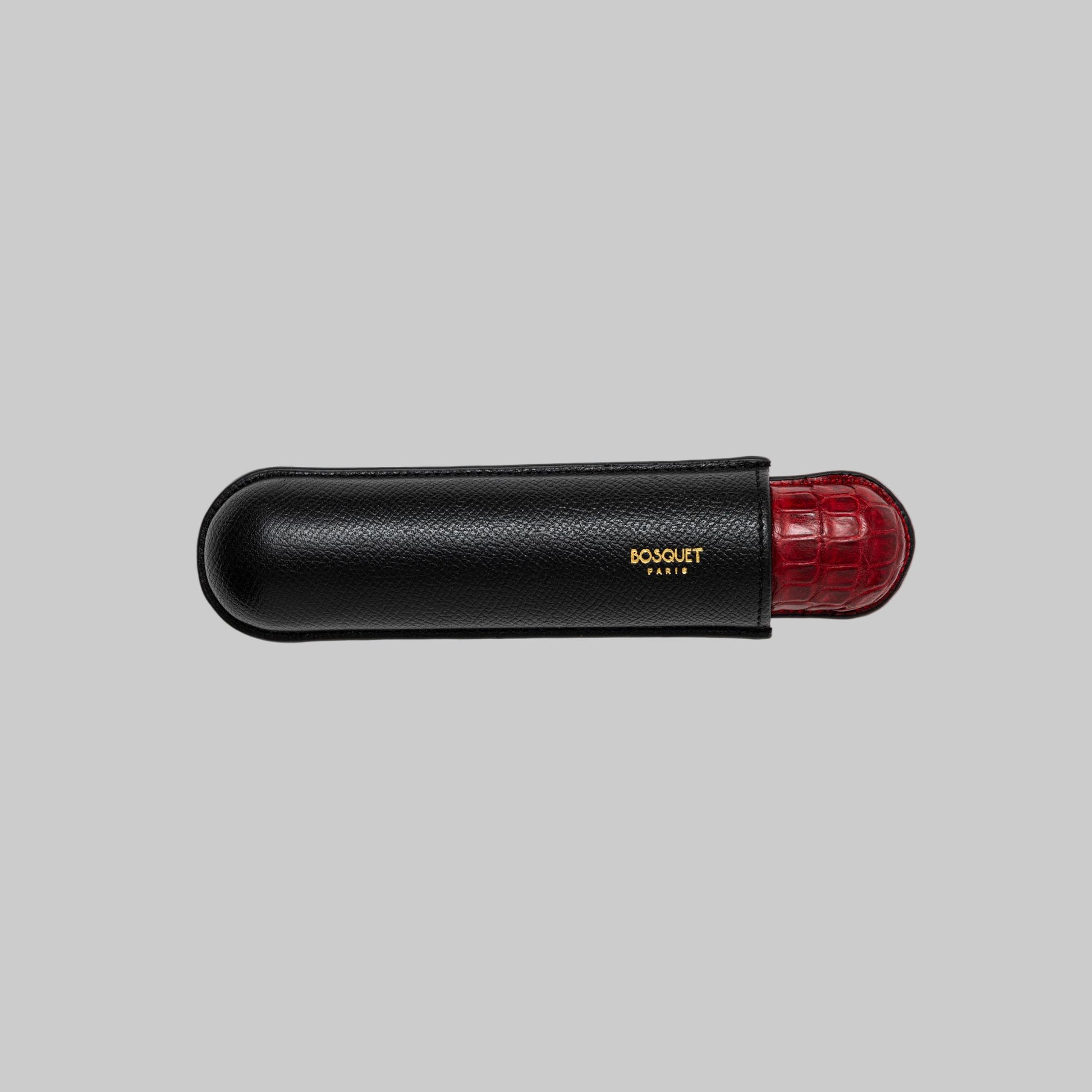 Crocodile Grained Calf Leather Case for 1 - Two Tone Black Red
