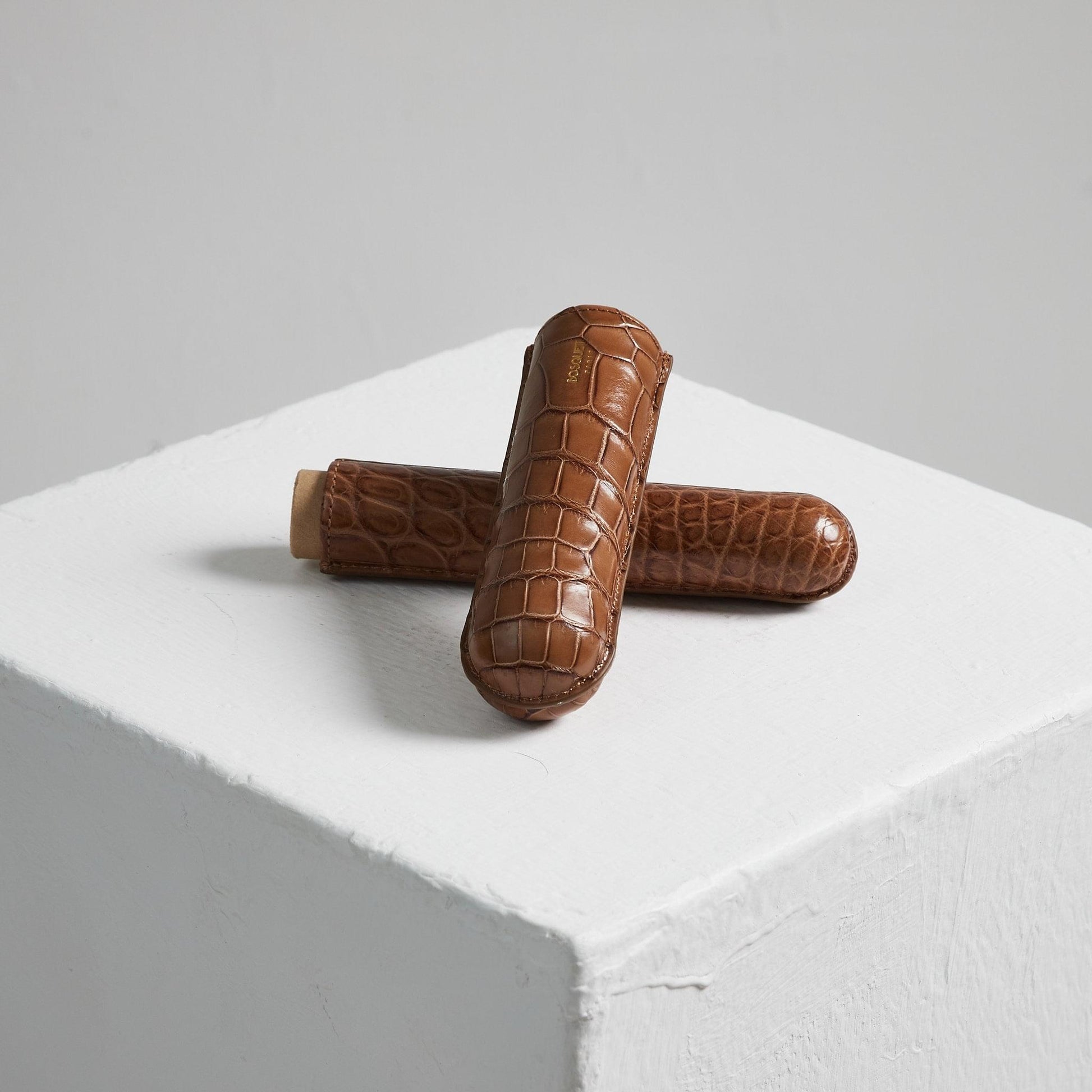 Handcrafted crocodile leather single cigar case