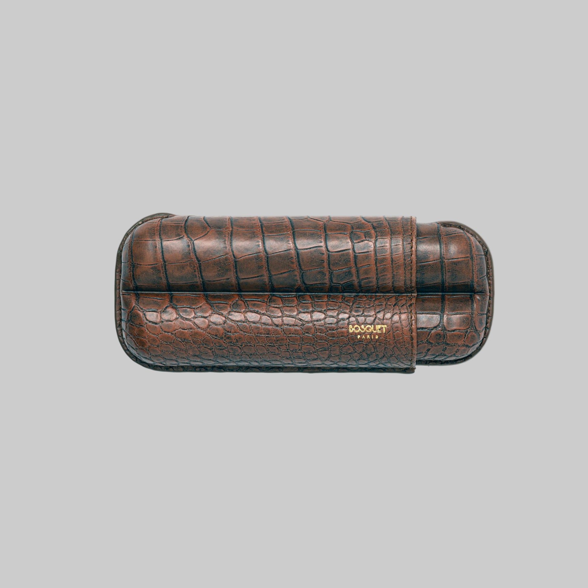 This elegant cigar case is handcrafted from genuine crocodile leather  in a classic silhouette. The chic design is complete with a 22 Carat gold Bosquet Paris signature for an ultra-luxe finish.