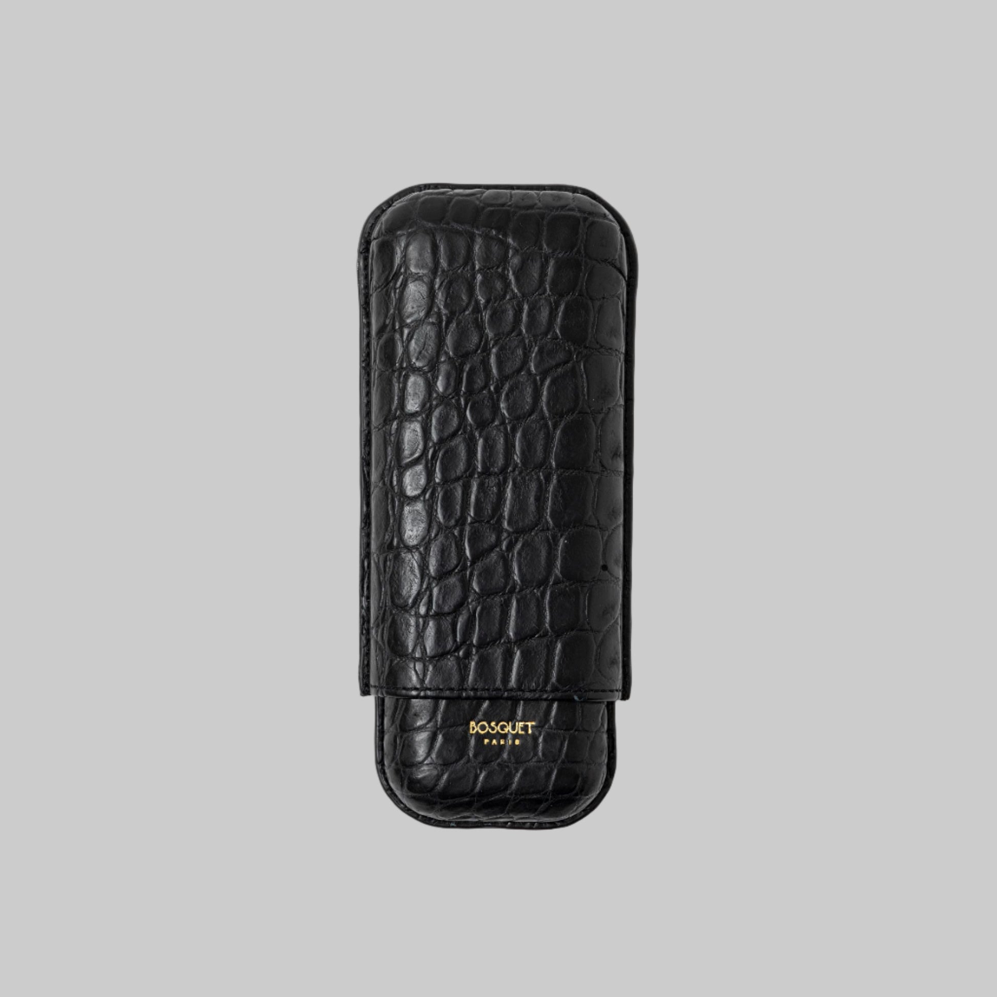 This elegant cigar case is handcrafted from genuine Crocodile leather in a classic silhouette. The chic design is complete with a 22 Carat gold Bosquet Paris signature for an ultra-luxe finish.