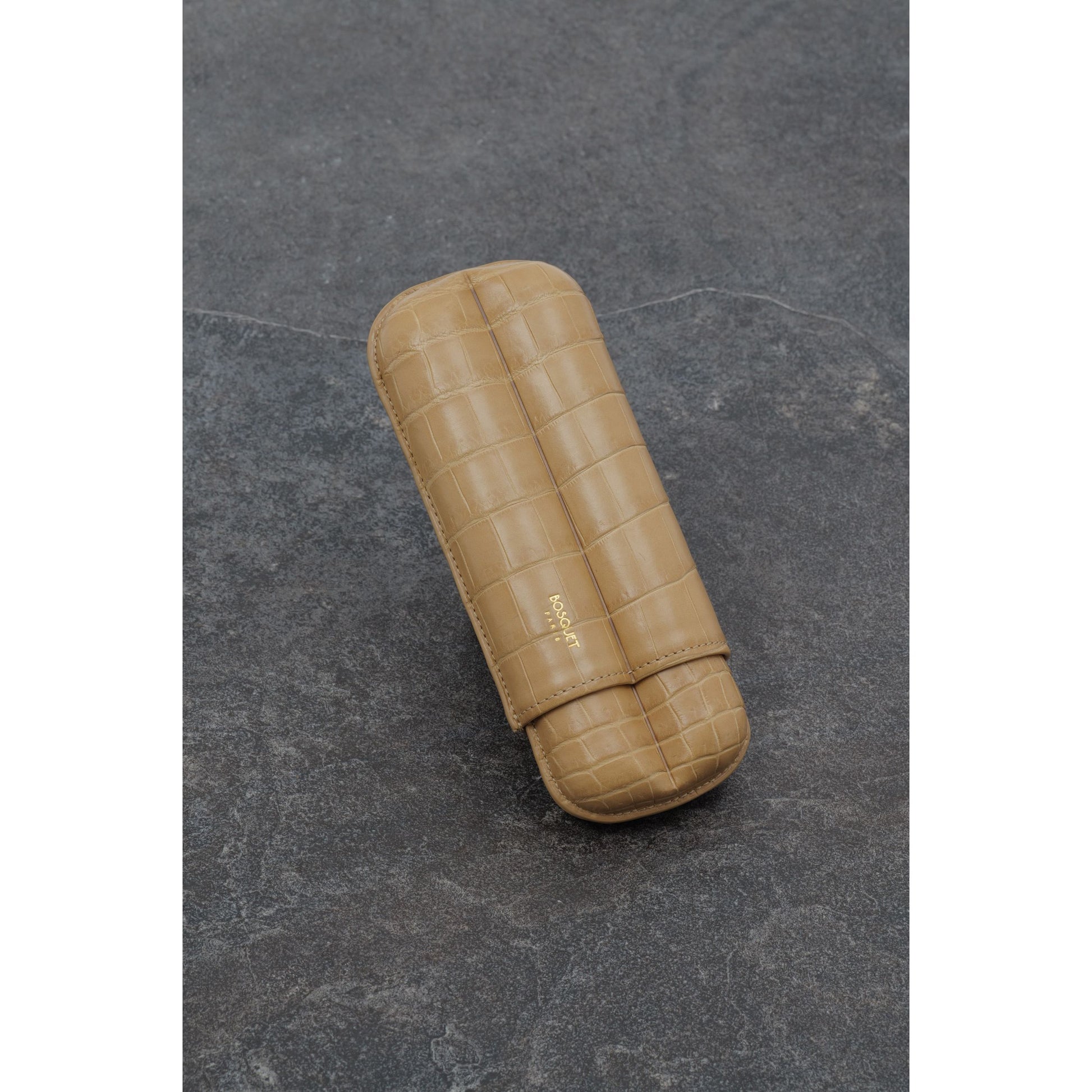 This elegant cigar case is handcrafted from genuine grade A Crocodile leather in a classic silhouette. The chic design is complete with a 22 Carat gold Bosquet Paris signature for an ultra-luxe finish. For the cigar enthusiast in your life, this is the ultimate gift.