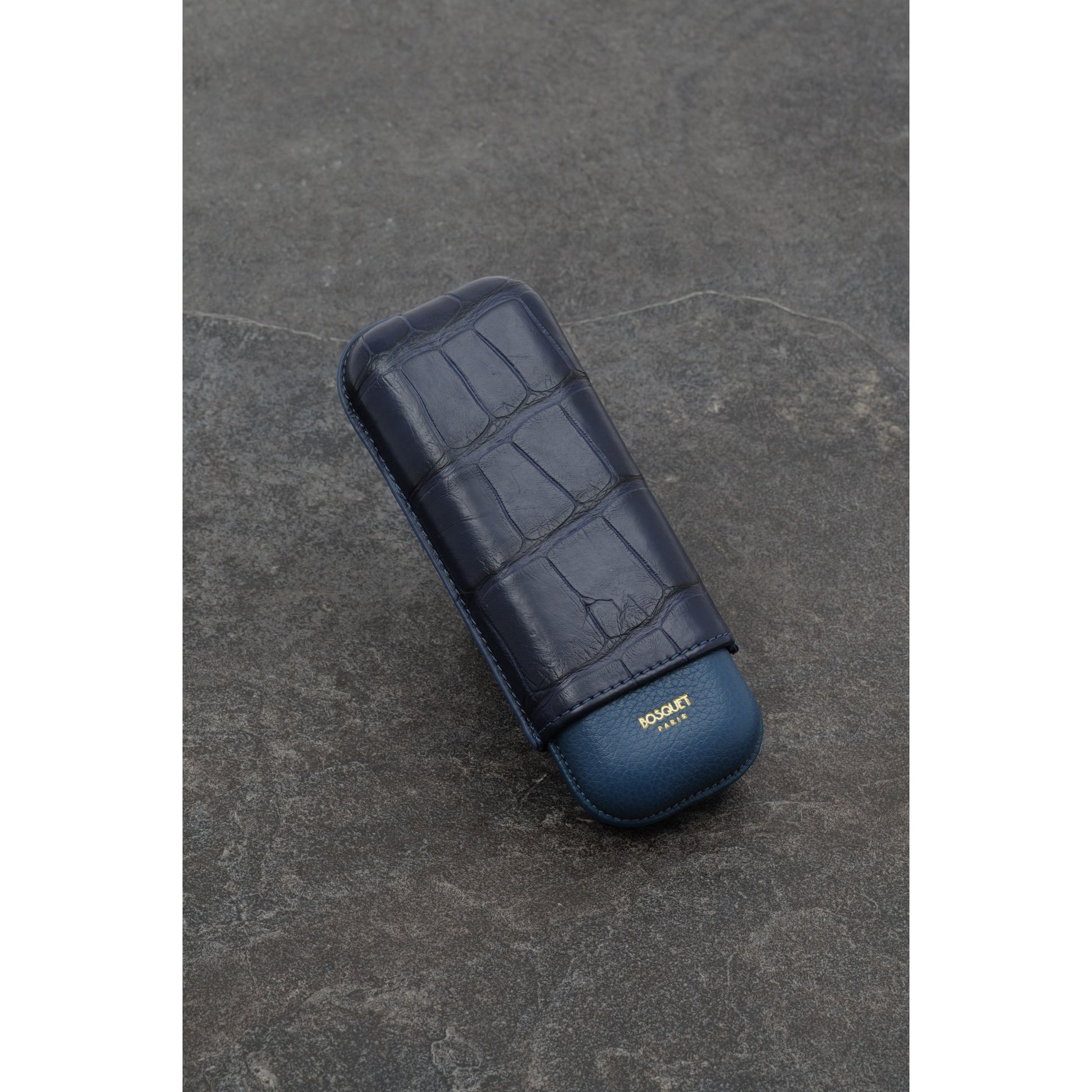 This elegant cigar case is handcrafted from genuine Crocodile leather in a classic silhouette. The chic design is complete with a 22 Carat gold Bosquet Paris signature for an ultra-luxe finish.