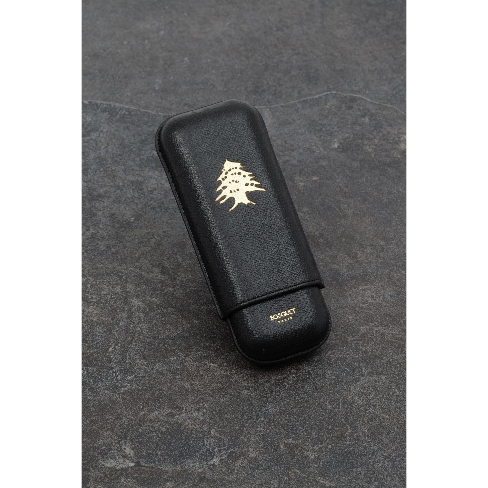 This elegant cigar case is handcrafted from grained calf leather in a classic silhouette. The chic design is complete with a 22 Carat gold Bosquet Paris signature for an ultra-luxe finish.