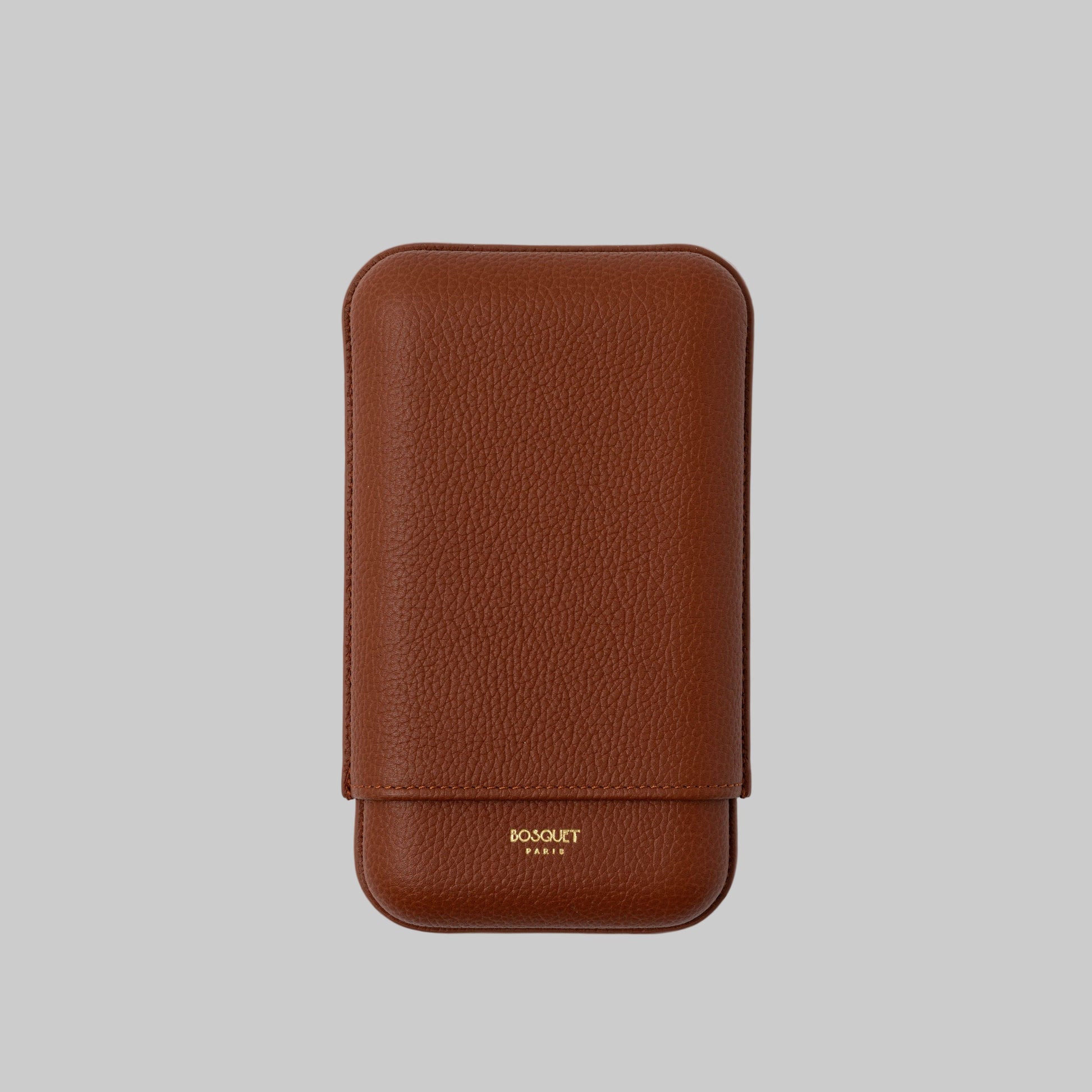 This elegant cigar case is handcrafted from grained calf leather in a classic silhouette. The chic design is complete with a 22 Carat gold Bosquet Paris signature for an ultra-luxe finish.