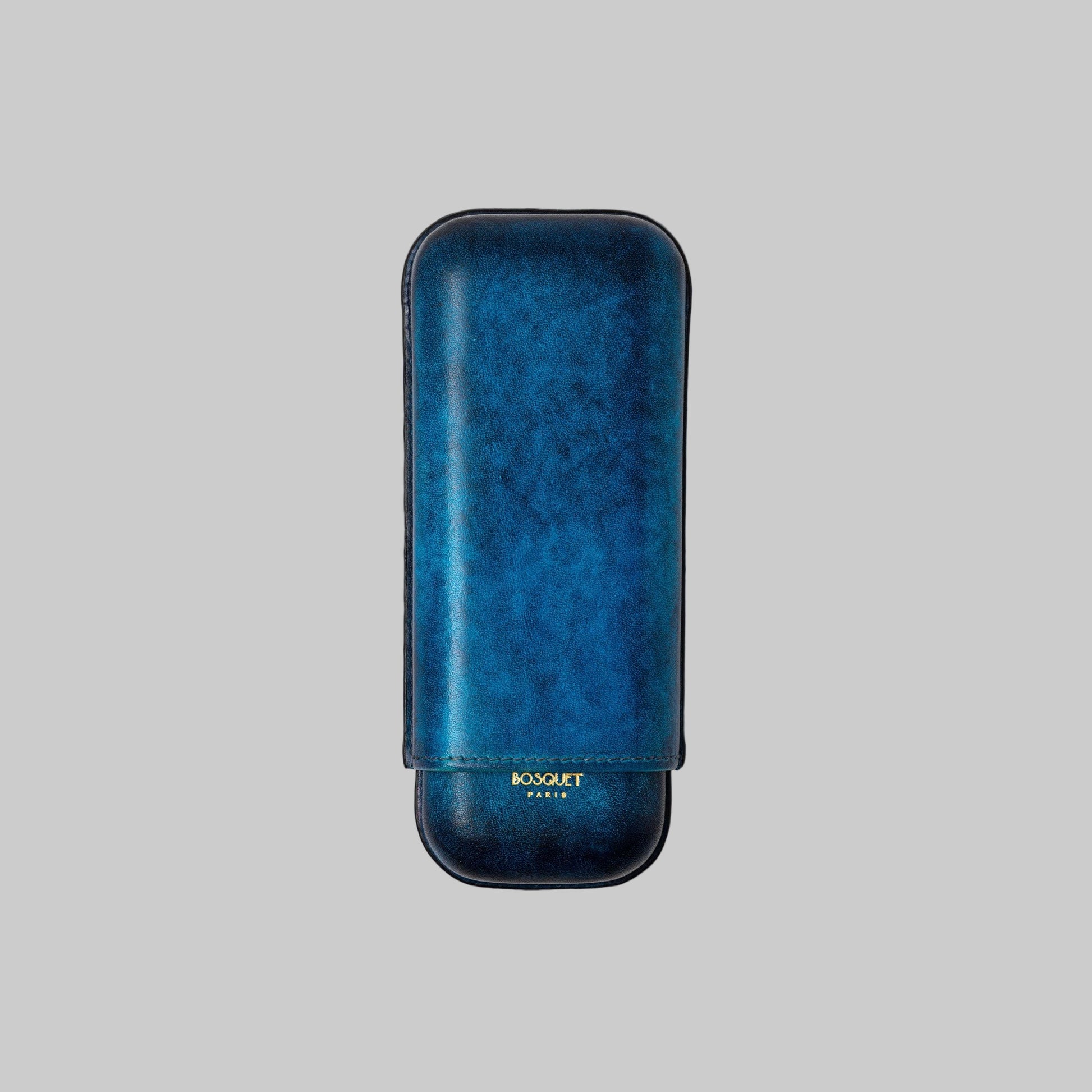 This elegant cigar case is handcrafted from genuine smooth calf leather in a classic silhouette and finished in Blue Denim patina. The chic design is complete with a 22 Carat gold Bosquet Paris signature for an ultra-luxe finish. For any cigar aficionado this is a stylish accessory.