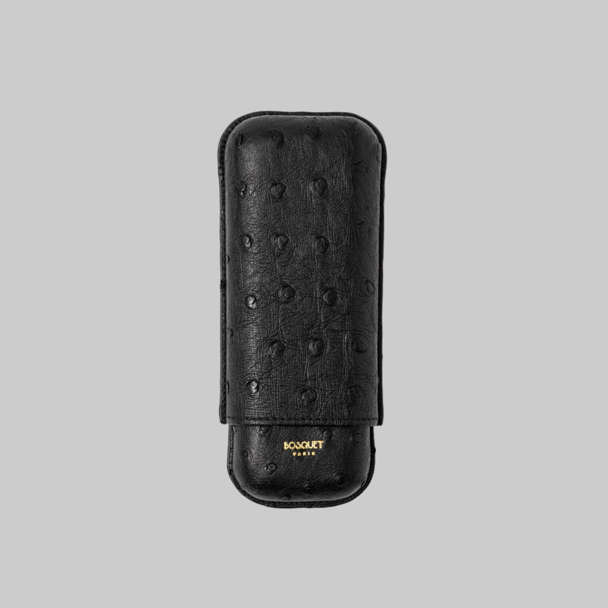 This elegant cigar case is handcrafted from genuine ostrich belly leather in a classic silhouette. The chic design is complete with a 22 Carat gold Bosquet Paris signature for an ultra-luxe finish.