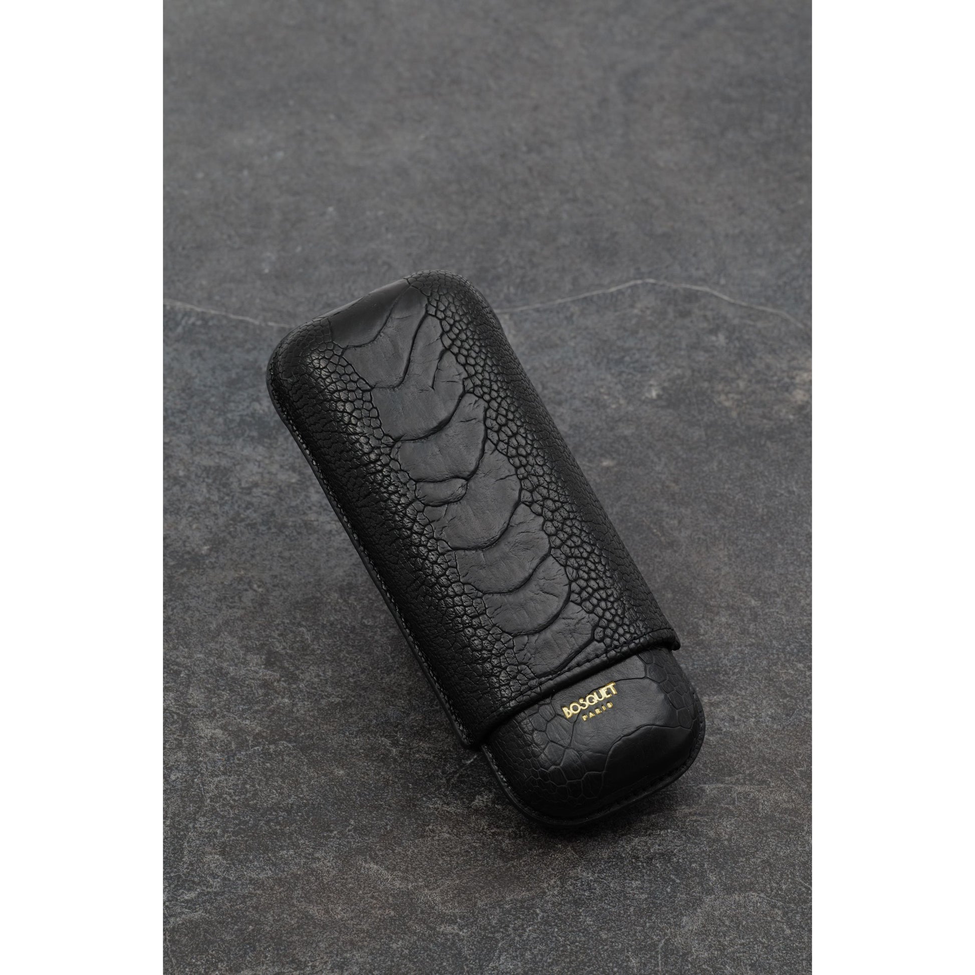Ostrich Leg Leather Rectangular Cigar Case - Black