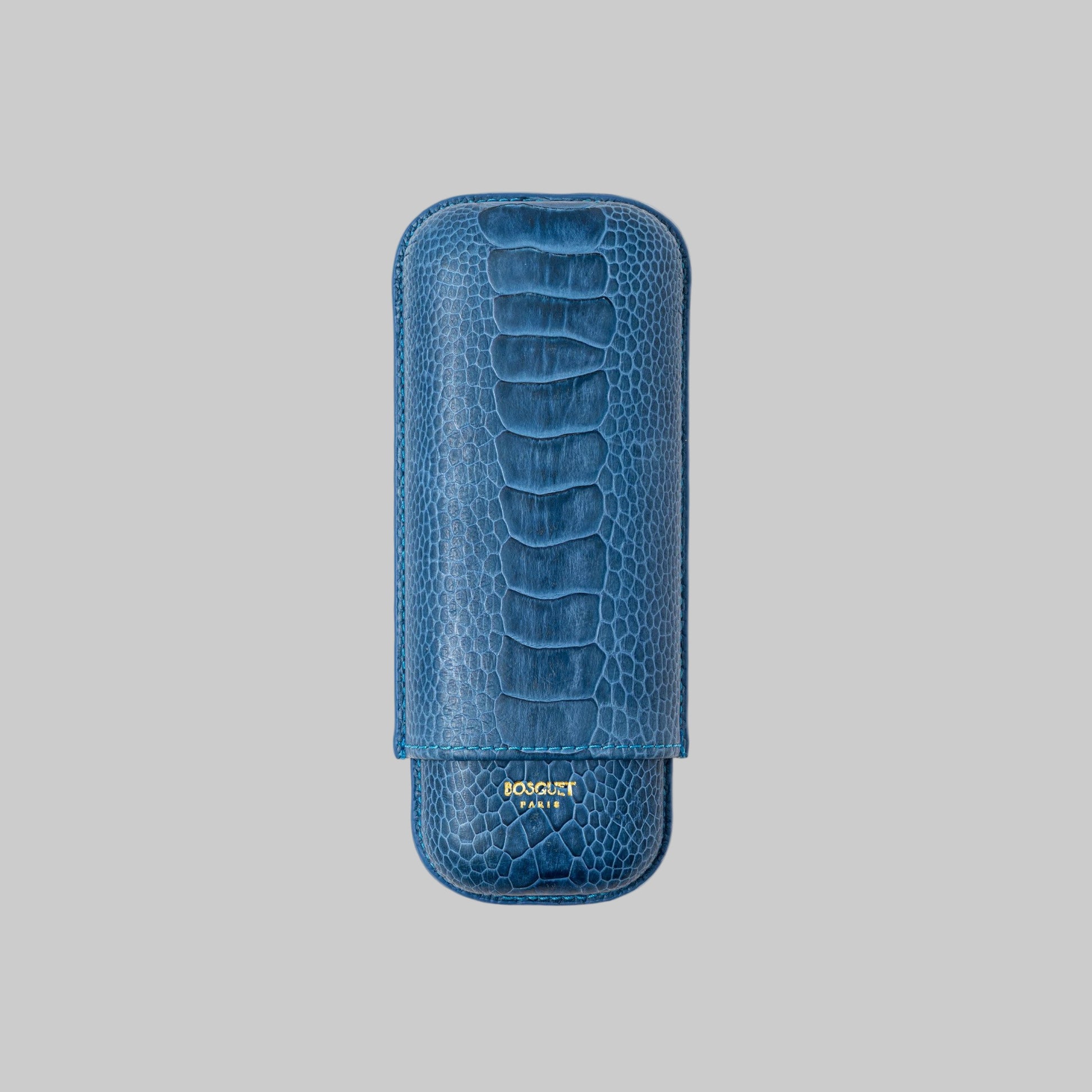 Ostrich Leg Leather Rectangular Cigar Case - Blue