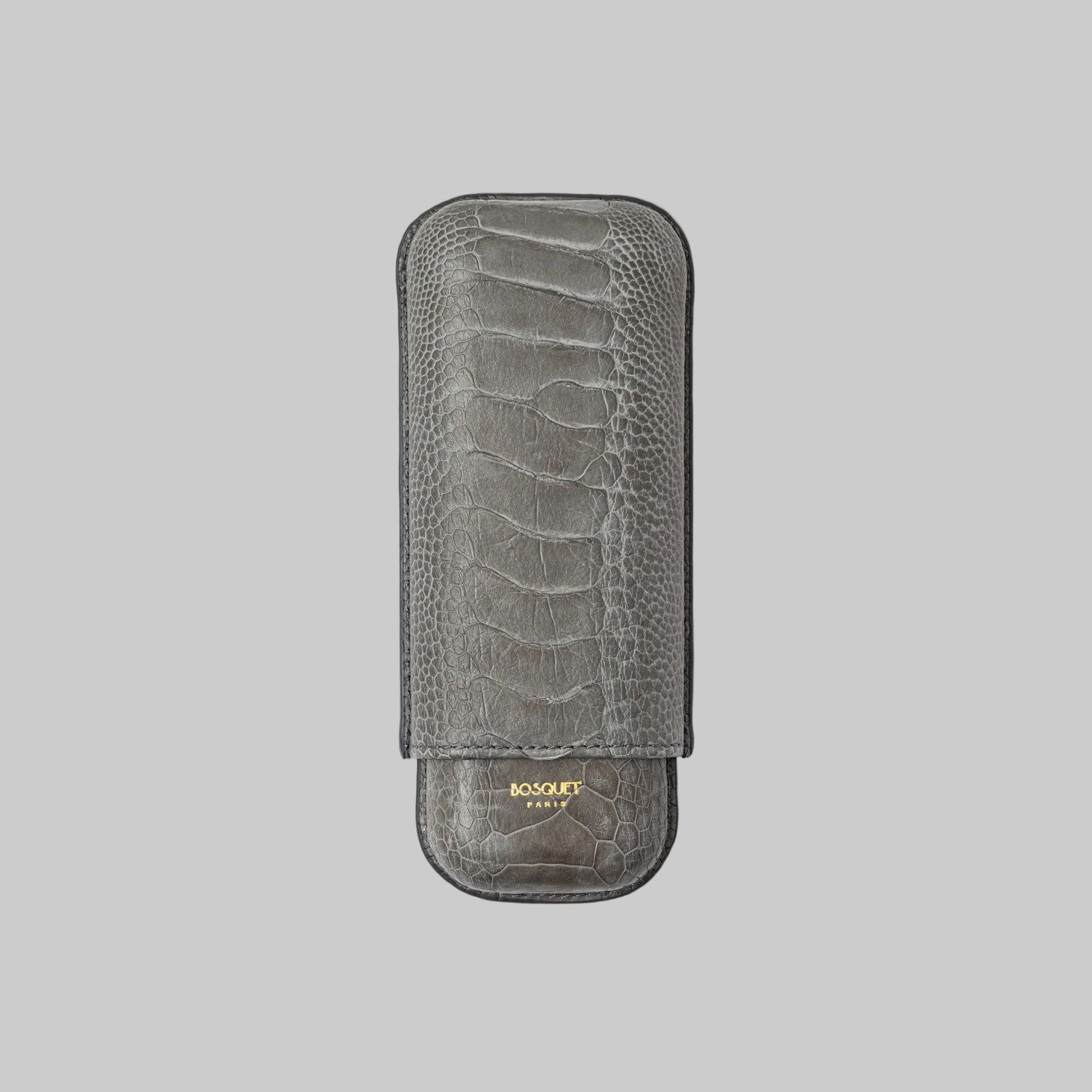 Ostrich Leg Leather Rectangular Cigar Case - Grey